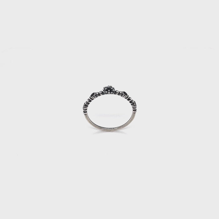 Black gem floral round ring